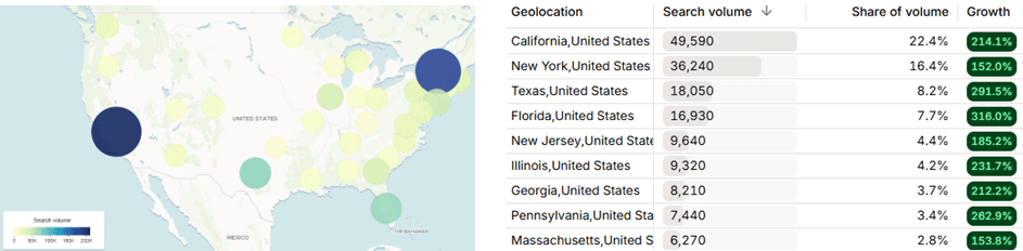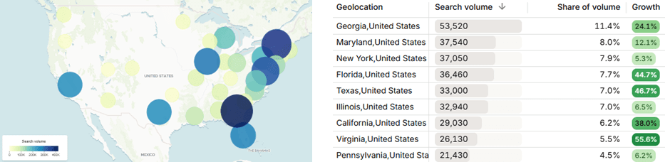 35% of Balenciaga Runner searches come from shoppers located in Georgia, Maryland, New York & Florida