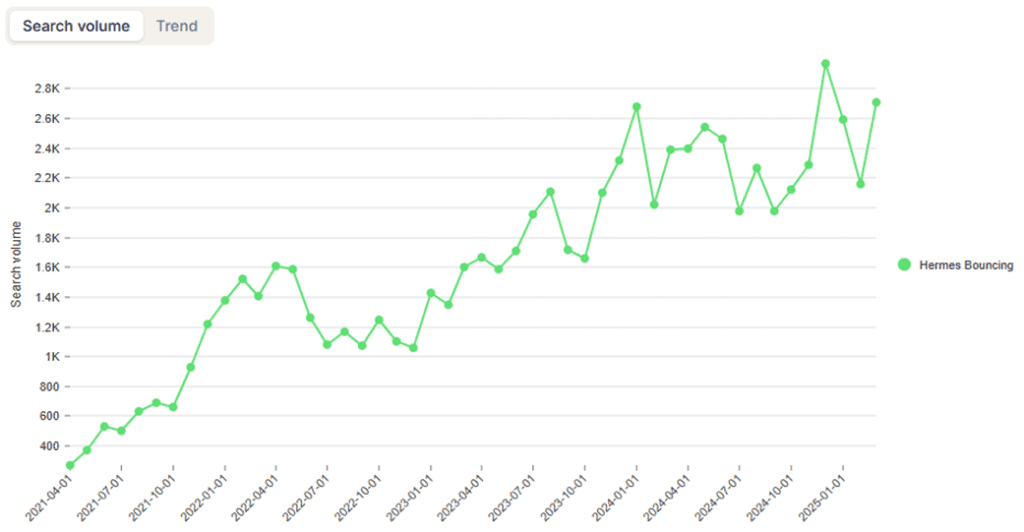 Zooming in on Hermès’ Bouncing sneaker: sustained growth in google search interest...
