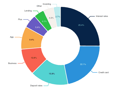 Australian banking searches cluster around interest rates, credit cards, deposit rates, and business banking, with app intent and investing emerging as the only clear growth areas while overall rate chatter cools.