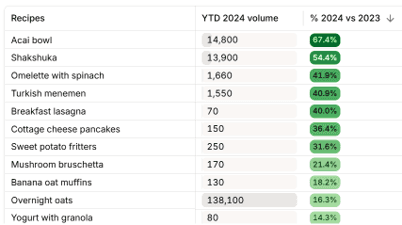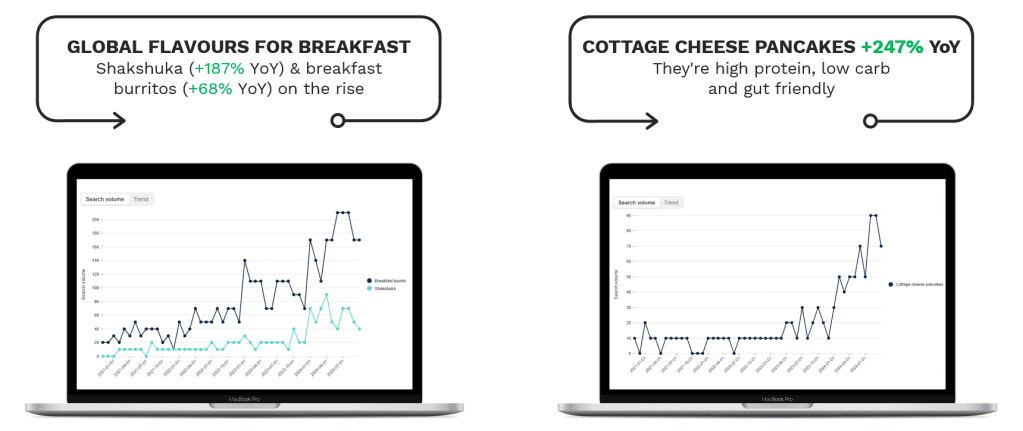 Searches for protein-rich breakfasts are up +58%, reflecting growing demand for functional morning meals...