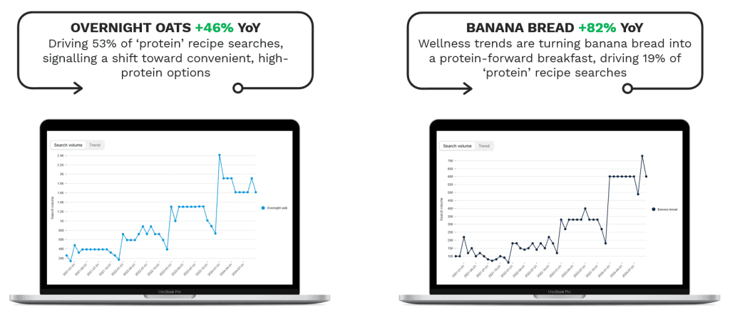 Overnight oats and banana bread recipes are trending as top protein search drivers