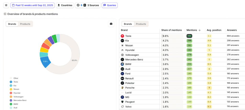 Identify relevant prompts and collect LLMs answers and weight brand mentions compare to competitors