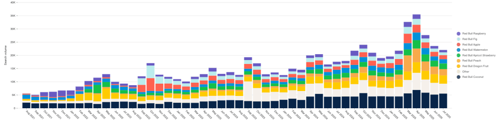 Search volume over time: what Red Bull products consumers are searching more than before?